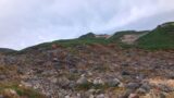 なんとか下山。振り返ると、さっきまで歩いていた稜線にガスがかかり始めていた。タイミングよかった。