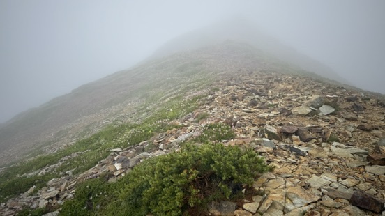 稜線では風と小雨で体温が奪われるような寒さ。