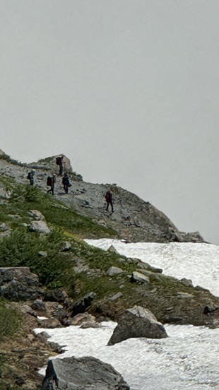 大雪渓を見下ろすと、続々と登ってくる人たち。